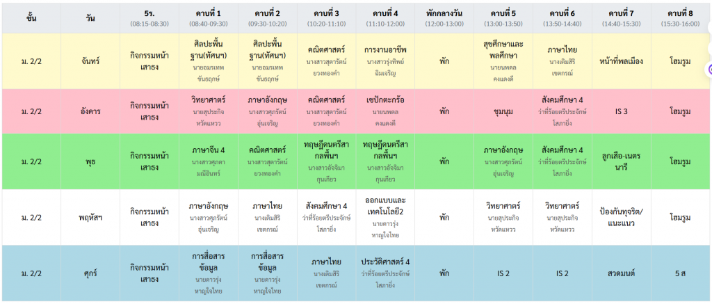 - ชั้นมัธยมศึกษาปีที่ 2/2
