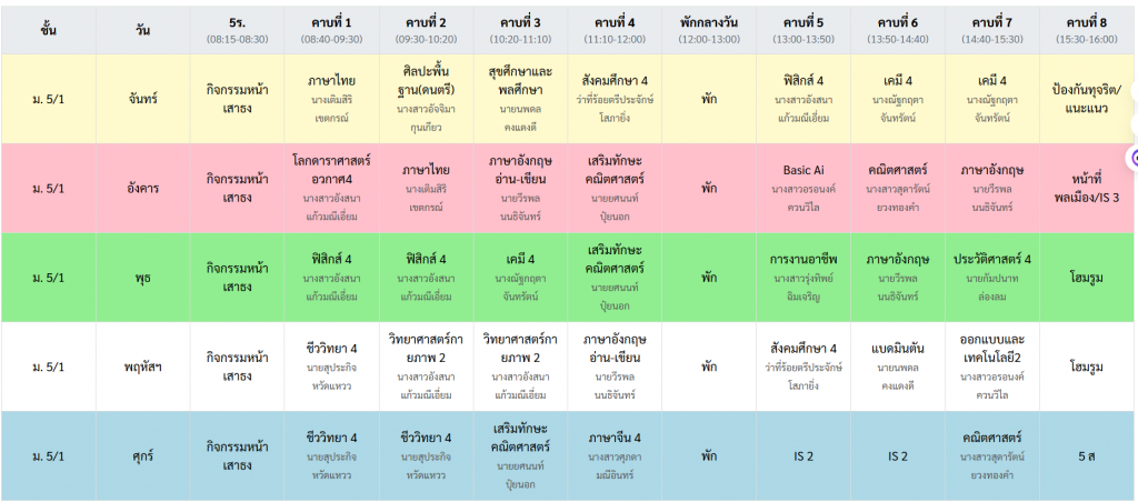 - ชั้นมัธยมศึกษาปีที่ 5/1