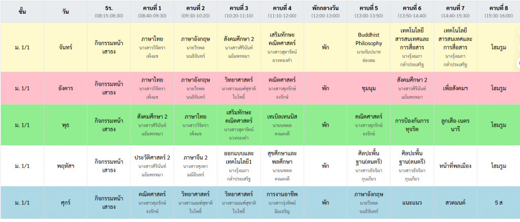 - ชั้นมัธยมศึกษาปีที่ 1/1