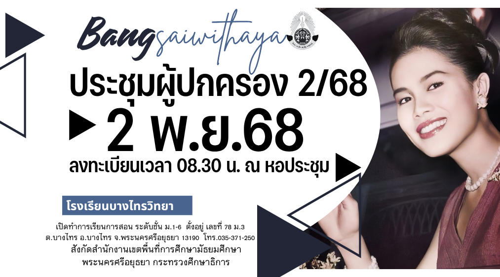 ข่าวประชาสัมพันธ์ประชุมผู้ปกครอง 2/2568 bangsaiwit4 ชั่วโมง ago01 mins วันอาทิตย์ที่ 2 พฤศจิกายน พ.ศ.2568 เวลา 08.30 น. ณ หอประชุมโรงเรียนบางไทรวิทยา แนะแนวเรื่อง Previous: ตารางเรียนนักเรียน 2/2568Next: โรงเรียนบางไทรวิทยาได้รับรางวัลระดับดีเด่น