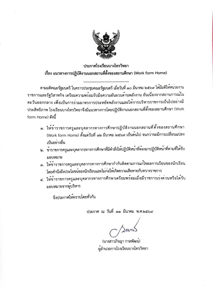 ประกาศ แนวทางการปฏิบัติงานนอกสถานที่ตั้งของสถานศึกษา(Work From Home) 3 views ตั้งแต่วันที่ 12 มีนาคม 2569 About the Author admin Administrator Visit Website View All Posts Post Views: 4 What do you feel about this? 0% Love 0% Funny 0% Wow 0% Sad 0% Angry ประกาศ Post navigation Previous: ขอแสดงความยินดีกับคุณครูที่ได้รับรางวัล “ดีเยี่ยม” การประกวดห้องเรียน ระดับเขตพื้นที่การศึกษาNext: รางวัล การแข่งขันศิลปหัตถกรรมนักเรียน ครั้งที่ ๗๓ Author's Other Posts รางวัล การแข่งขันศิลปหัตถกรรมนักเรียน ครั้งที่ ๗๓ รางวัล การแข่งขันศิลปหัตถกรรมนักเรียน ครั้งที่ ๗๓ 3 ขอแสดงความยินดีกับคุณครูที่ได้รับรางวัล “ดีเยี่ยม” การประกวดห้องเรียน ระดับเขตพื้นที่การศึกษา ขอแสดงความยินดีกับคุณครูที่ได้รับรางวัล “ดีเยี่ยม” การประกวดห้องเรียน ระดับเขตพื้นที่การศึกษา 3 ขอแสดงความยินดีกับ คุณครูกัมปนาท ล่องลม ได้รับรางวัล ระดับดีเยี่ยม ด้านประวัติศาสตร์ ขอแสดงความยินดีกับ คุณครูกัมปนาท ล่องลม ได้รับรางวัล ระดับดีเยี่ยม ด้านประวัติศาสตร์ 1 นักเรียนได้รับรางวัล กิจกรรม การแข่งขันยุวเกษตรกร นักเรียนได้รับรางวัล กิจกรรม การแข่งขันยุวเกษตรกร 1 Related Stories ประกาศ ซ่อมผลการเรียนภาคเรียนที่ 2/2568 2 ประกาศ เปิดเรียนภาคเรียนที่ 1 ปีการศึกษา 2569 1 ประกาศ ประกาศผลการเรียนภาคเรียนที่ 2/2568 0 66 ประกาศ รับสมัครนักเรียน ม.1 และ ม.4 ปีการศึกษา 2569 0 84 Trending Now รางวัล การแข่งขันศิลปหัตถกรรมนักเรียน ครั้งที่ ๗๓ 1 รางวัล การแข่งขันศิลปหัตถกรรมนักเรียน ครั้งที่ ๗๓ 3 แนวทางการปฏิบัติงานนอกสถานที่ตั้งของสถานศึกษา(Work From Home) 2 แนวทางการปฏิบัติงานนอกสถานที่ตั้งของสถานศึกษา(Work From Home) 3 ขอแสดงความยินดีกับคุณครูที่ได้รับรางวัล “ดีเยี่ยม” การประกวดห้องเรียน ระดับเขตพื้นที่การศึกษา 3 ขอแสดงความยินดีกับคุณครูที่ได้รับรางวัล “ดีเยี่ยม” การประกวดห้องเรียน ระดับเขตพื้นที่การศึกษา 3 ขอแสดงความยินดีกับ คุณครูกัมปนาท ล่องลม ได้รับรางวัล ระดับดีเยี่ยม ด้านประวัติศาสตร์ 4 ขอแสดงความยินดีกับ คุณครูกัมปนาท ล่องลม ได้รับรางวัล ระดับดีเยี่ยม ด้านประวัติศาสตร์ 1
