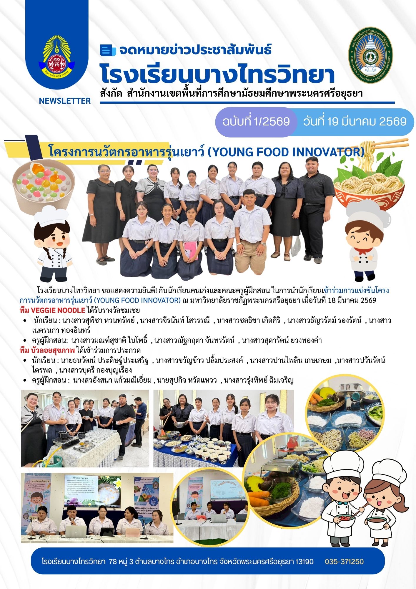 ผลงาน/รางวัล ขอแสดงความยินดี! กับนักเรียนคนเก่งและคณะครูผู้ฝึกสอน ในการนำนักเรียนเข้าร่วมการแข่งขันโครงการนวัตกรอาหารรุ่นเยาว์ (Young Food Innovator) ณ มหาวิทยาลัยราชภัฏพระนครศรีอยุธยา 6 views About the Author admin Administrator Visit Website View All Posts Post Views: 4 What do you feel about this? 0% Love 0% Funny 0% Wow 0% Sad 0% Angry ผลงาน/รางวัล Post navigation Previous: ดร.ภิรญา กาลพัฒน์ รับโล่รางวัลผู้บริหารดีเด่น Author's Other Posts ดร.ภิรญา กาลพัฒน์ รับโล่รางวัลผู้บริหารดีเด่น ดร.ภิรญา กาลพัฒน์ รับโล่รางวัลผู้บริหารดีเด่น 10 โรงเรียนบางไทรวิทยา ได้รับการรับรอง เป็น โรงเรียนสิ่งแวดล้อมศึกษาเพื่อการพัฒนาที่ยั่งยืน ระดับประเทศ โรงเรียนบางไทรวิทยา ได้รับการรับรอง เป็น โรงเรียนสิ่งแวดล้อมศึกษาเพื่อการพัฒนาที่ยั่งยืน ระดับประเทศ 17 โรงเรียนบางไทรวิทยาได้รับรางวัลโรงเรียนต้นแบบสร้างการเปลี่ยนแปลงเชิงบวก ระดับดี โรงเรียนบางไทรวิทยาได้รับรางวัลโรงเรียนต้นแบบสร้างการเปลี่ยนแปลงเชิงบวก ระดับดี 15 ดาวน์โหลดเกียรติบัตรศิลปหัตถกรรมครั้งที่ 73 ดาวน์โหลดเกียรติบัตรศิลปหัตถกรรมครั้งที่ 73 53 Related Stories ผลงาน/รางวัล ดร.ภิรญา กาลพัฒน์ รับโล่รางวัลผู้บริหารดีเด่น 10 ผลงาน/รางวัล โรงเรียนบางไทรวิทยา ได้รับการรับรอง เป็น โรงเรียนสิ่งแวดล้อมศึกษาเพื่อการพัฒนาที่ยั่งยืน ระดับประเทศ 17 ผลงาน/รางวัล โรงเรียนบางไทรวิทยาได้รับรางวัลโรงเรียนต้นแบบสร้างการเปลี่ยนแปลงเชิงบวก ระดับดี 15 ผลงาน/รางวัล ดาวน์โหลดเกียรติบัตรศิลปหัตถกรรมครั้งที่ 73 53 ผลงาน/รางวัล ผลการทดสอบ O-NET ม.3 ปีการศึกษา 2568 50 ผลงาน/รางวัล รางวัล การแข่งขันศิลปหัตถกรรมนักเรียน ครั้งที่ ๗๓ 56 Trending Now ขอแสดงความยินดี! กับนักเรียนคนเก่งและคณะครูผู้ฝึกสอน ในการนำนักเรียนเข้าร่วมการแข่งขันโครงการนวัตกรอาหารรุ่นเยาว์ (Young Food Innovator) ณ มหาวิทยาลัยราชภัฏพระนครศรีอยุธยา 1 ขอแสดงความยินดี! กับนักเรียนคนเก่งและคณะครูผู้ฝึกสอน ในการนำนักเรียนเข้าร่วมการแข่งขันโครงการนวัตกรอาหารรุ่นเยาว์ (Young Food Innovator) ณ มหาวิทยาลัยราชภัฏพระนครศรีอยุธยา 6 ดร.ภิรญา กาลพัฒน์ รับโล่รางวัลผู้บริหารดีเด่น 2 ดร.ภิรญา กาลพัฒน์ รับโล่รางวัลผู้บริหารดีเด่น 10 โรงเรียนบางไทรวิทยา ได้รับการรับรอง เป็น โรงเรียนสิ่งแวดล้อมศึกษาเพื่อการพัฒนาที่ยั่งยืน ระดับประเทศ 3 โรงเรียนบางไทรวิทยา ได้รับการรับรอง เป็น โรงเรียนสิ่งแวดล้อมศึกษาเพื่อการพัฒนาที่ยั่งยืน ระดับประเทศ 17 โรงเรียนบางไทรวิทยาได้รับรางวัลโรงเรียนต้นแบบสร้างการเปลี่ยนแปลงเชิงบวก ระดับดี 4 โรงเรียนบางไทรวิทยาได้รับรางวัลโรงเรียนต้นแบบสร้างการเปลี่ยนแปลงเชิงบวก ระดับดี 15